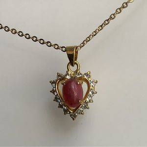 TLC New vintage Rhodonite halo heart pendant necklace