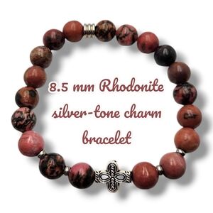 8.5 mm Rhodonite silver-tone charm bracelet
