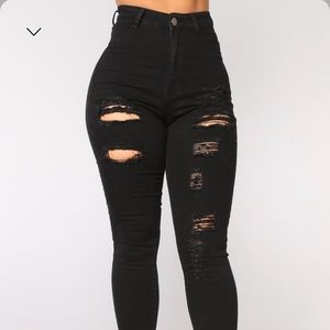 FASHIONNOVA HIGH RISE RIPPED JEANS BLACK SIZE 1 SKINNY JEANS NEW