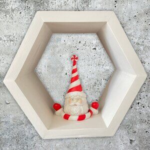 Whitewashed Hexagonal Shelf – Floating Wooden Wall Shelf – Rustic Home Decor