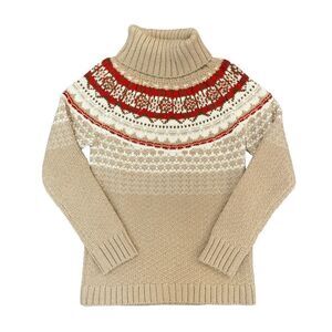 Cassis Fair Isle Cowl Turtleneck Rink Sweater Ski Wool Blend Tan Women's L Cozy