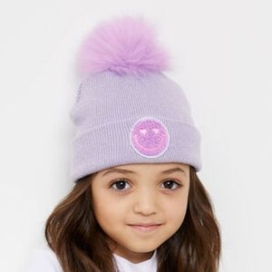 🆓️ W/ $45 Purchase! Ardene Purple Pompom Beanie W/ Smiley Patch ~ Baby/Toddler