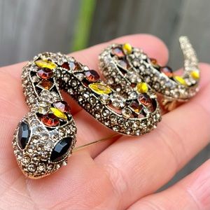 Large Snake brooch snake pin rhinestone snake brooch snake lover gift-Brown
