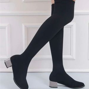 PUZZLE Black Over-Knee Women's Sock Boots
