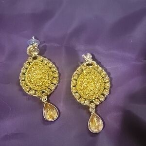 Vintage Gold Tone Earrings Crystal Teardrop #2271