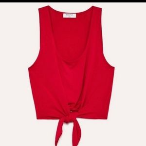 Zara tie knot shoulder strappy V-neck crisscross back black top Sz S NWT