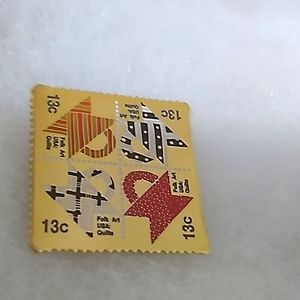 COLLECTIBLE QUILTING PIN- USPS STAMP FOLK ART - 13 CENTS