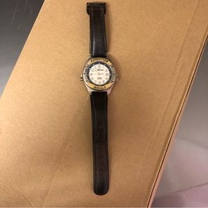 Vintage Carmen Quartz Wrist Watch White & Silver, Black Leather Strap Working