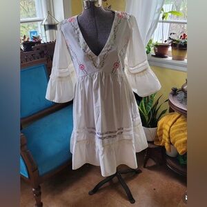 Vintage 1960s. Junket Dress. One of a Kind, vintage linens. Embroidery. US14