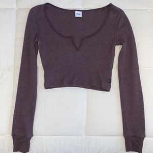 Free People Lettuce Hem Thermal Top Plum Ribbed Long Sleeve Size M