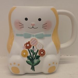 NWT Seeds & Sunshine 3D White Pink Easter Bunny Rabbit Ceramic Coffee Mug