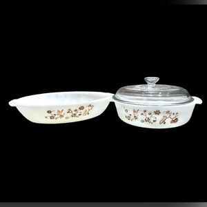 Corningware beige Symphony 2 lt casserole dish & Pyrex Fireside Tint Glass lid