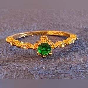 Emerald Green Simulant Stretch Ring Gold Tone Vintage Inspired Statement