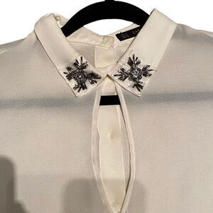 EUC Gorgeous Zara Sheer Blouse with Bejewelled Collar