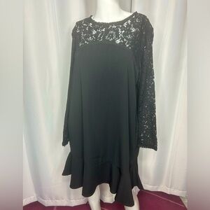 Ashley Stewart LBD Black Dress with Gold Accents Size 14-16W 3/4 Sleeve