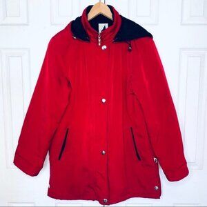 Tower London Fog hoodie red coat front zipper long sleeve jacket women l…