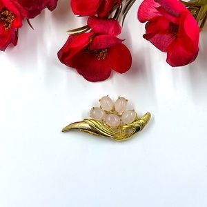 Vtg 925 Sterling Silver & Pink Quartz Cabochon Floral Stud Earrings