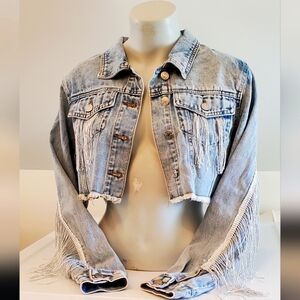 Zara-faux suede Tassel Bead Collar Detail Double Pocket Jacket (Size:Large)