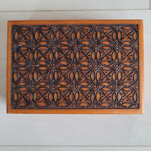 L’Oratoire Engraved Rosary Box, Hinged Cherry Wood Trinket Box